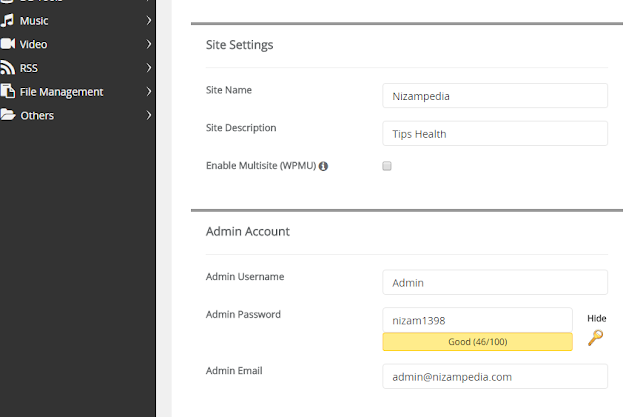9. Berikutnya bagian Site Setting dan Admin Account.